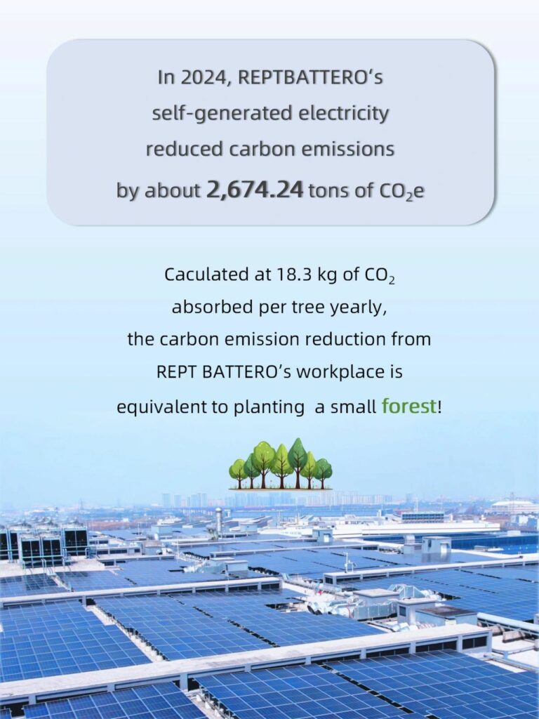Calculando que cada árbol absorbe unos 18,3 kg de CO2 al año, la reducción de CO2e de un año en el lugar de trabajo de REPT BATTERO equivale a plantar un pequeño bosque.
